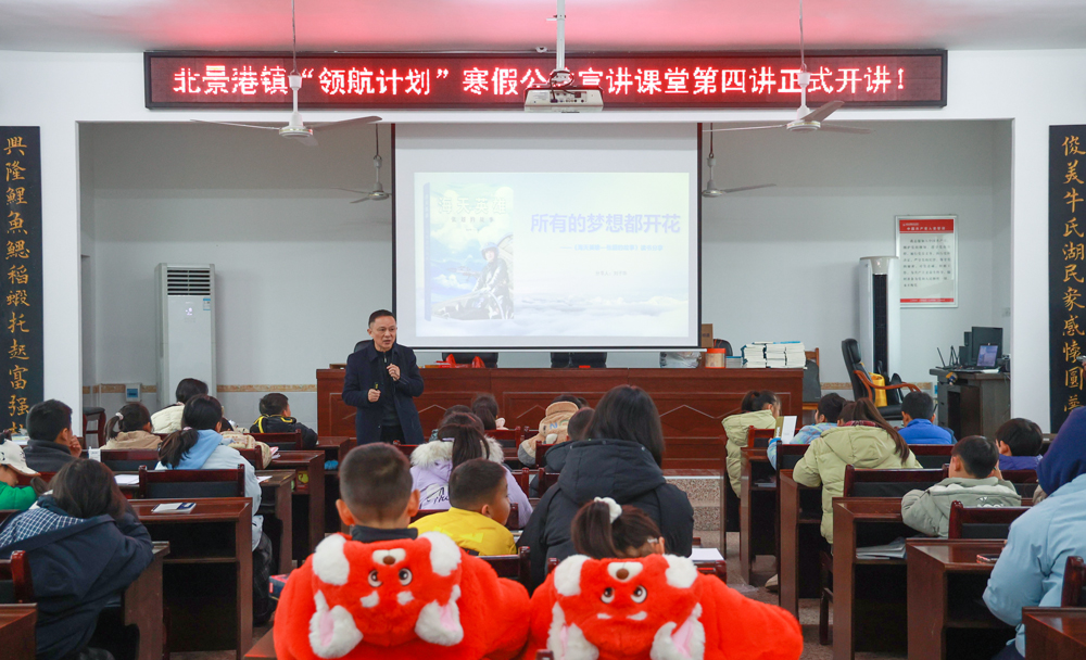 华容融媒体中心讯(记者 李之贤)2月5日,华容县北景港镇鲤鱼鳃村村委会二楼会议室里,“景港青年说——领航计划”寒假公益课堂迎来第四讲,40余名留守儿童聆听了一堂特殊的“英雄课”,全军挂像英模、人民英雄张超的感人事迹深深打动了在场每一个孩子。