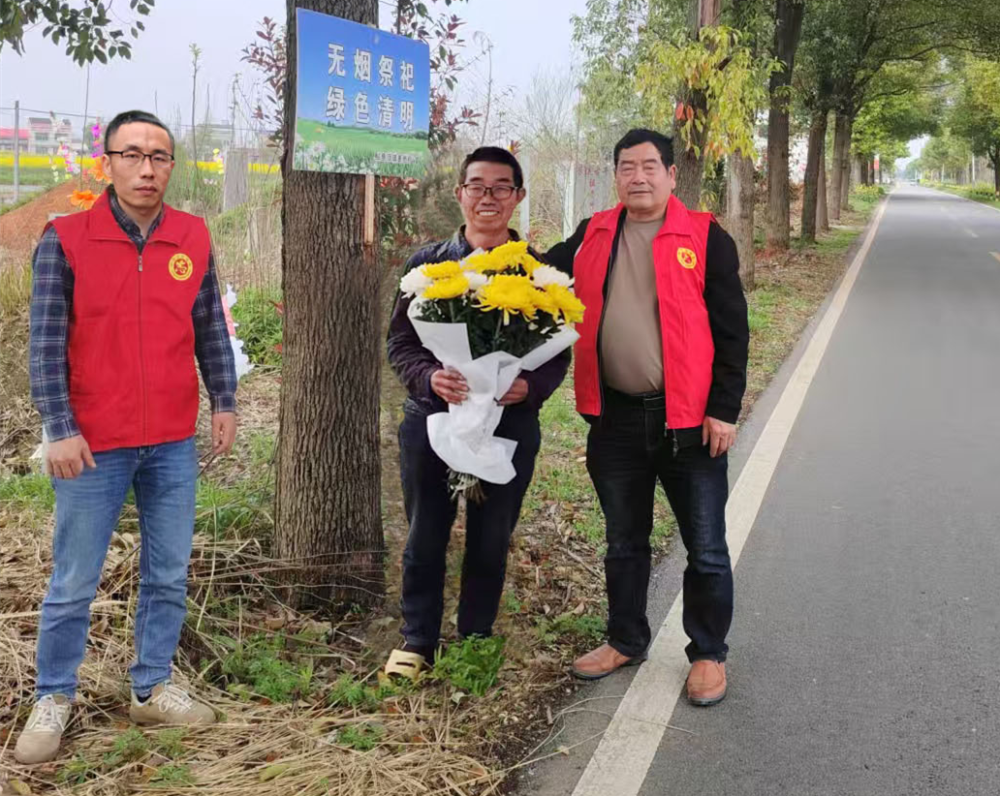 “大叔,清明祭祖重在心意,烧纸钱、放鞭炮既污染环境,又易引发山火。不如献上一束鲜花、留下一句追思,同样能传递对先人的深情缅怀。”在鲇鱼须镇麦地村的主干道、集市入口与公墓周边,移风易俗宣传员正用亲切乡音开展文明劝导。他们手持倡议书,耐心讲解焚烧纸钱、燃放爆竹的安全隐患与生态影响,推广鲜花祭扫、擦拭墓碑等绿色方式,并反复叮嘱村民牢记森林防火“十不准”,严守野外用火规定。