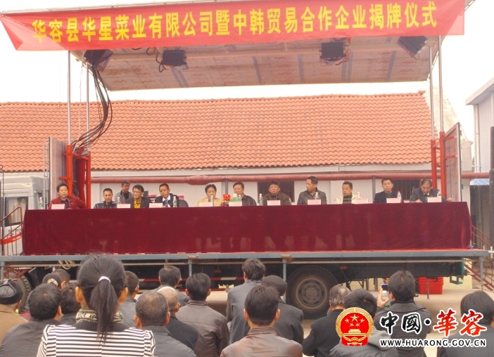 11月12日上午,华容县华星菜业有限公司揭牌仪式在护城乡花子坟举行,参加此次仪式的有县人大副主任万松斌,县蔬菜办、县招商局、县供销联社等单位负责人。在县领导牵头,相关职能部门的磋商下,与韩国经销商成功签订了400吨南瓜销售意向合同,这对促进我县农产品外销,发展现代农业,建设国家级现代农业示范区,持续增加农民收入有十分重要的意义。(孙学全)