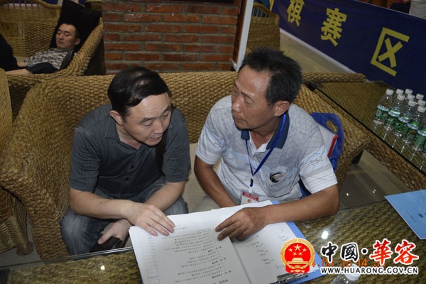 象棋协会副会长刘新民和我县象棋界种子选手张益清(左)在工作现场