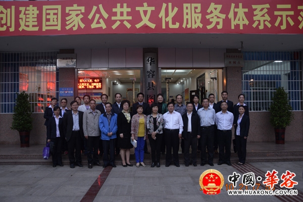 文化部督查组一行在县图书馆前与我县工作人员合影留念