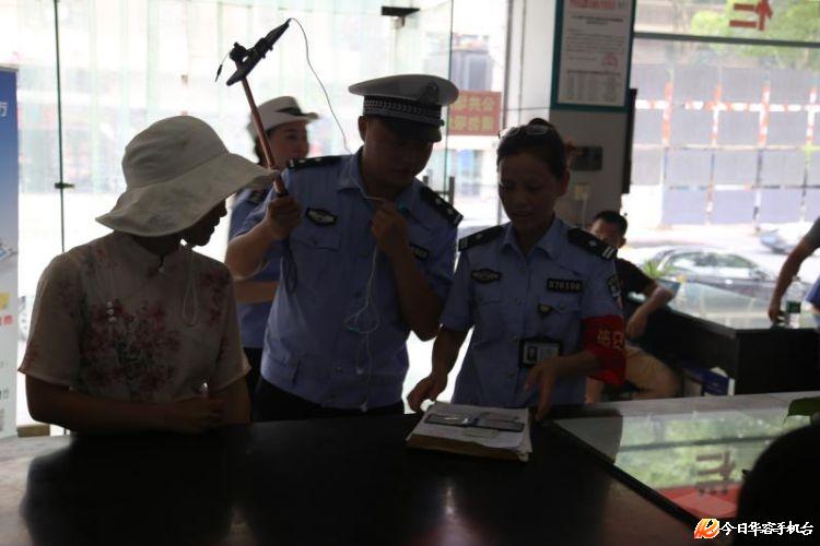 7月13日上午,华容县公安局交通警察大队在县车管所门口设置现场,以微直播的方式面向网友进行宣传。