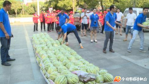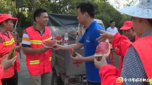 7月27日上午,华容县政协政府办系统联络组联合县青商开展“送清凉”活动,将500来个西瓜送到了环卫工人手中,让他们在炎炎夏日享受西瓜的甘甜和清爽。