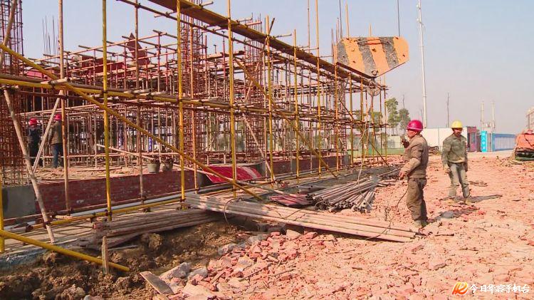 中午1时,记者在施工现场看到,建设工地上近200人正在紧张的作业:安装脚手架,扎模板,浇捣混凝土,工人师傅们一刻也没有松懈。五台塔吊、挖掘机,机器轰鸣声交织一片,虽然冬季的气温不高,但是施工现场热火朝天。项目经理彭正其告诉记者,因为工期紧张,加上天气晴好,现在除了午餐时间,其他白天的时间段工人们都在加班加点施工。