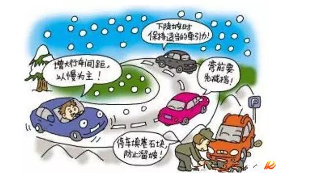 3、冬季冰雪恶劣天气,雨中、雪中开车尽量使用二或三挡、时速不超过30公里或40公里,随时注意观察前后车辆与自己车的距离,提前做好采取各种应急措施的心理准备。如需停车时,尽量提前100米左右减速、轻点刹车,使后面来车有足够的应急准备时间。