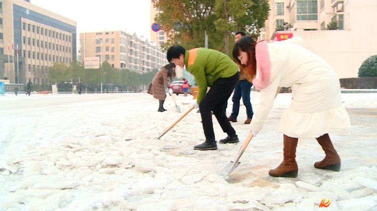 1月29日八点,在县委机关大院西侧,县政协机关干部和县广播电视台的工作人员早早地来到街头铲冰雪。虽然天气异常寒冷,但大家都干得热火朝天。在大家的共同努力下,县委机关大院西侧人行道上的冰雪被铲除。县政协副主席文丽萍参加活动。