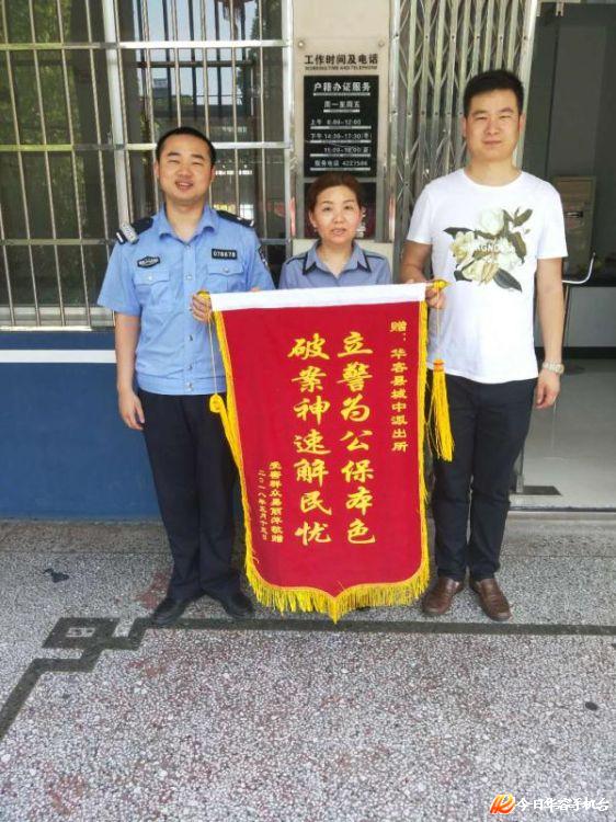 近日,华容县一飞车抢夺案被害人易某某来到华容县公安局城中派出所,赠送锦旗表谢意,感谢民警为其追回被抢夺财物。
