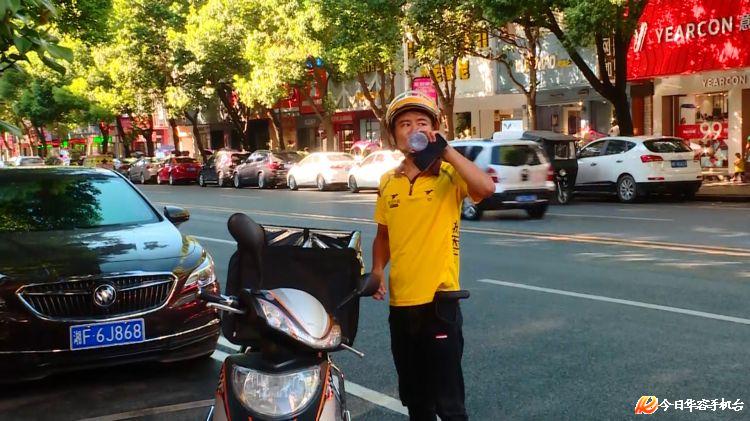 下午4时许,已在旁边蹲守了一段时间的记者发现,不断有环卫工人、装修工人、交警、快递员、外卖骑手等高温下的户外工作者路过,他们打开冰箱,拿取一份解渴食品解渴。