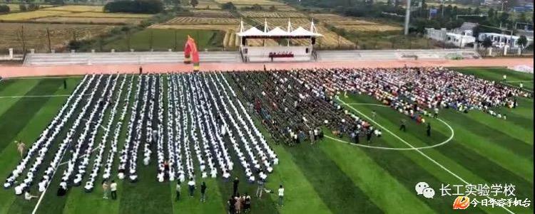 9月13日,华容县长工实验学校全体师生在田径场举行了隆重的开学典礼暨小学部一年级入学仪式。