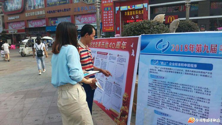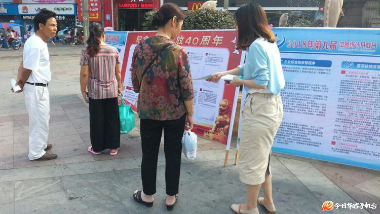 当天,阳光普照下的华容县城市广场,四个写着“纪念改革开放四十周年”“走进四经普”等标题的大幅展版特别抢眼,引得路人纷纷驻足观看。“国家统计数据是怎样采集的?”“为什么要开展第四次全国经济普查?”“关于统计,国家领导人做了哪些指示、批示?”......活动现场,工作人员向过往市民发放着宣传资料,宣传讲解统计政策与知识,并耐心地解答着群众提出的问题。