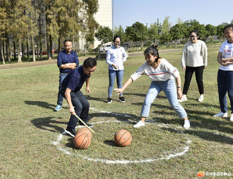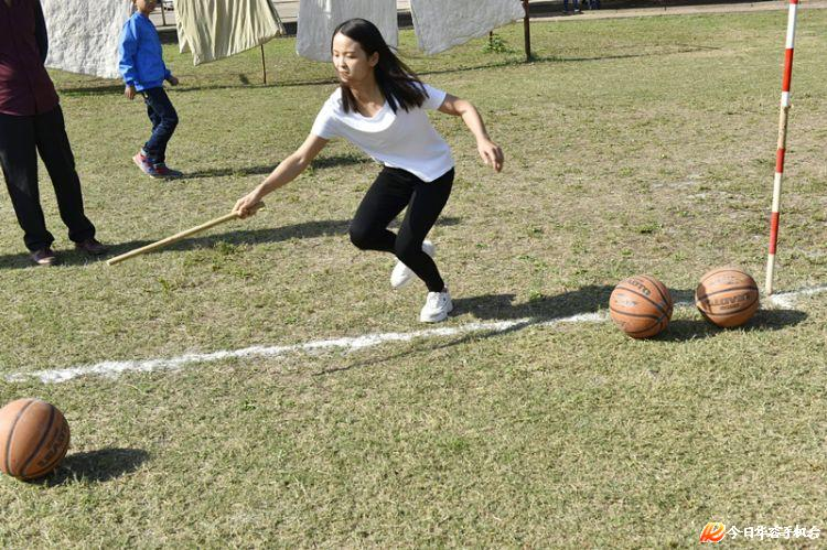 “拨篮球”趣味接力赛中,老师们注意力高度集中,个个速度敏捷,动作规范,拨球流畅,移步、过杆灵活。现场的助威声、欢呼声、欢笑声一浪高过一浪。