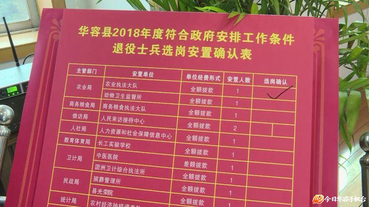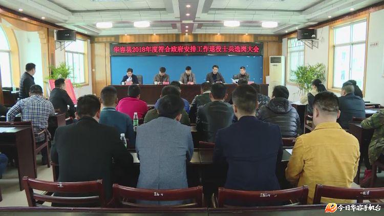 11月12日,华容县召开2018年度符合政府安排工作的退役士兵选岗大会。25名退役士兵在32个岗位上选岗。