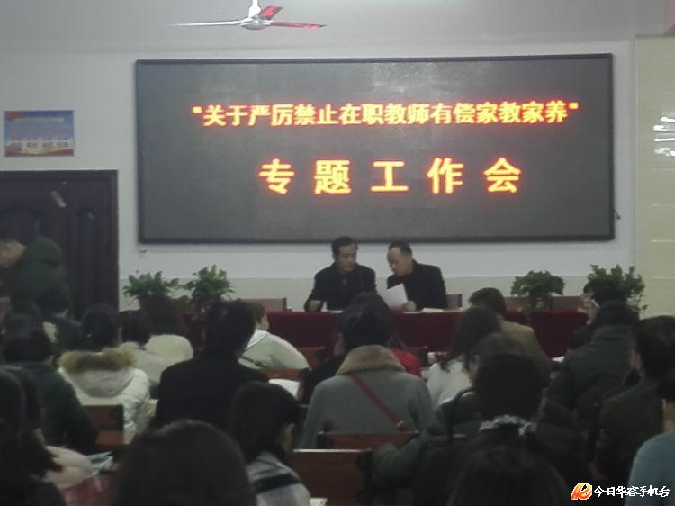 会议通报了华容县教师有偿家教家养存在的问题;传达了县教体局“关于严禁在职教师有偿家教家养”工作督战会精神。会议进一步严肃该项工作纪律,宣读了县教体局对违反责任状并被查实者的处理原则。