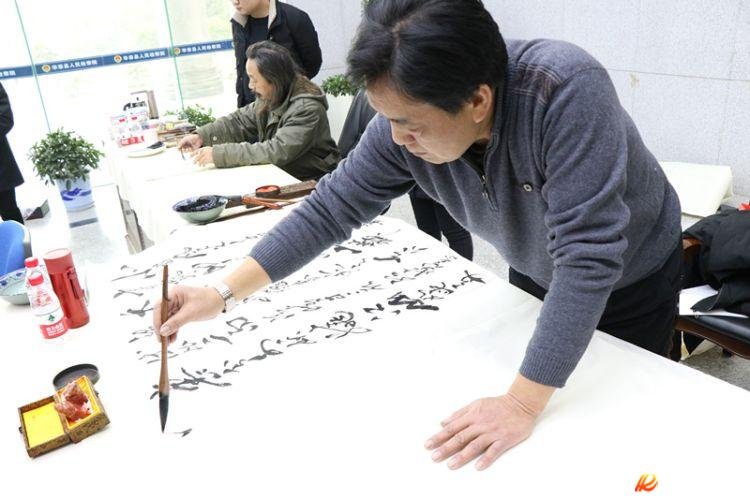 1月15日,湖南省检察官文联“送文化下基层”活动来到华容县人民检察院,为一线基层干警们献上了一场丰盛的精神文化盛宴。受邀书画家们通过写春联、赠书画等形式,为一线基层干警们献上了一场丰盛的精神文化盛宴。省检察官文联主席陈海波,省检察官文联秘书长罗家欢,岳阳市人民检察院党组成员、政治部主任徐立泉,市检察官文联主席严爱国,县书法家协会秘书长张佳斌等出席活动。