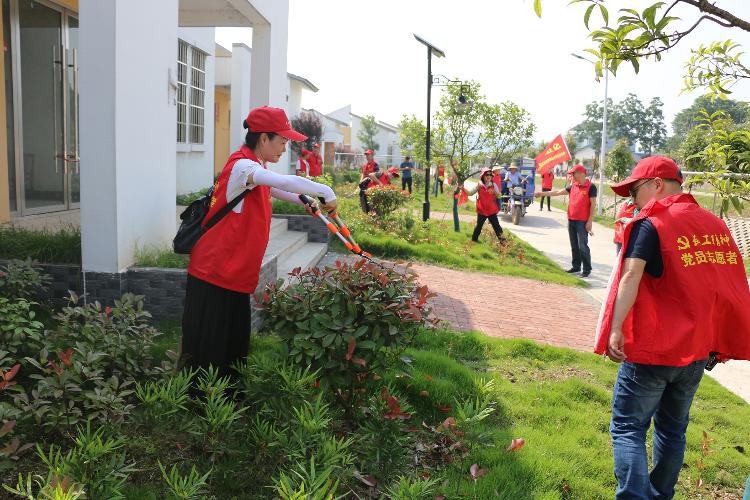 图为林业局党员到禹山镇南山村参加主题党日党员志愿者服务活动