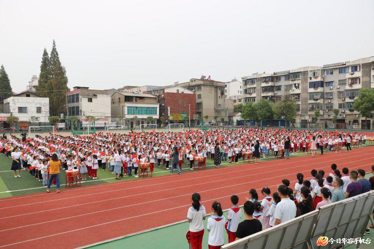 “爱我中华,中华雄姿英发......”学校运动场上红旗飘扬,红歌嘹亮。9月25日,华容县城关中心小学举行一年级新生“启智 立德 爱国”入学仪式,进一步加强学生文明礼仪教育和爱国主义教育,庆祝中华人民共和国成立70周年。