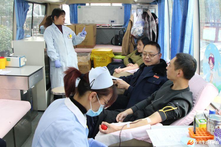 12月6日,华容县税务局组织干部职工在机关院内开展无偿献血活动。