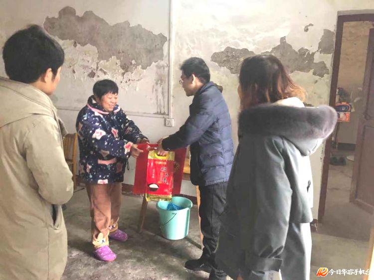 社区工作人员还与县农商行的志愿者到辖区走访,为困难居民们送去了米、油、春联等物质。