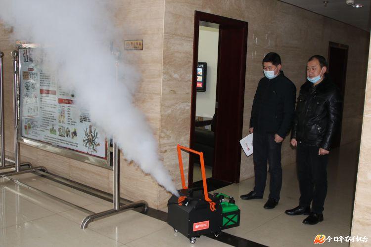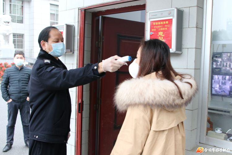 2月3日,华容县税务局机关门口设立起检疫通道,进入机关的工作人员在此一一测量体温、登记信息,确认体征无异情后方可入内。与此同时,机关大楼内分子悬浮消毒机也已开动,逐层进行消毒。