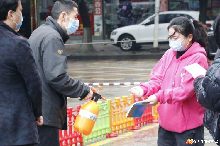 重点在校门口进行两次防疫检测,一是校门前20米处,学生有序排队,间隔保持1米,查验师生个人健康卡,并对手部和所带物品进行消毒,劝返家长进入校园。