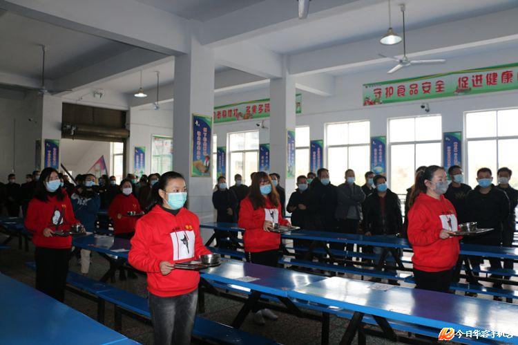 地点在食堂,演练的内容包括:餐前体温测量、排队分发饭菜、S型就餐以及餐后有序离开。