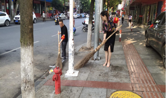 活动中,大家积极行动,不怕脏不怕累,认真清扫公共场所、道路两旁、树蔸周围、卫生死角的纸屑、烟头、落叶等垃圾杂物,经过大家的辛勤劳动,清扫后的责任区域干净整洁,卫生环境有了明显改善。