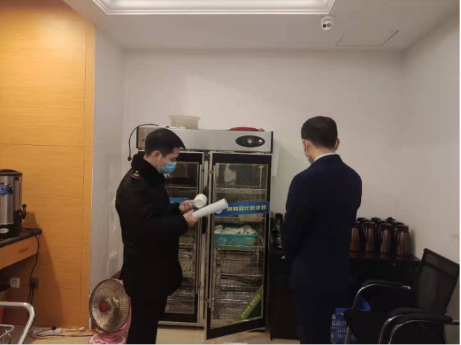 本次重点检查:疫情常态化管理工作的落实情况,防控物资的配备,进出人员测量体温等疫情防控工作。同时,对该酒店疫情期间“两会”的接待方案,突发公共卫生事件应急预案、预防传染病应急预案进行了检查;对该酒店从业人员健康合格证明、消毒间茶杯、拖鞋、毛巾布草等各项消毒情况,进行了认真仔细地检查。
