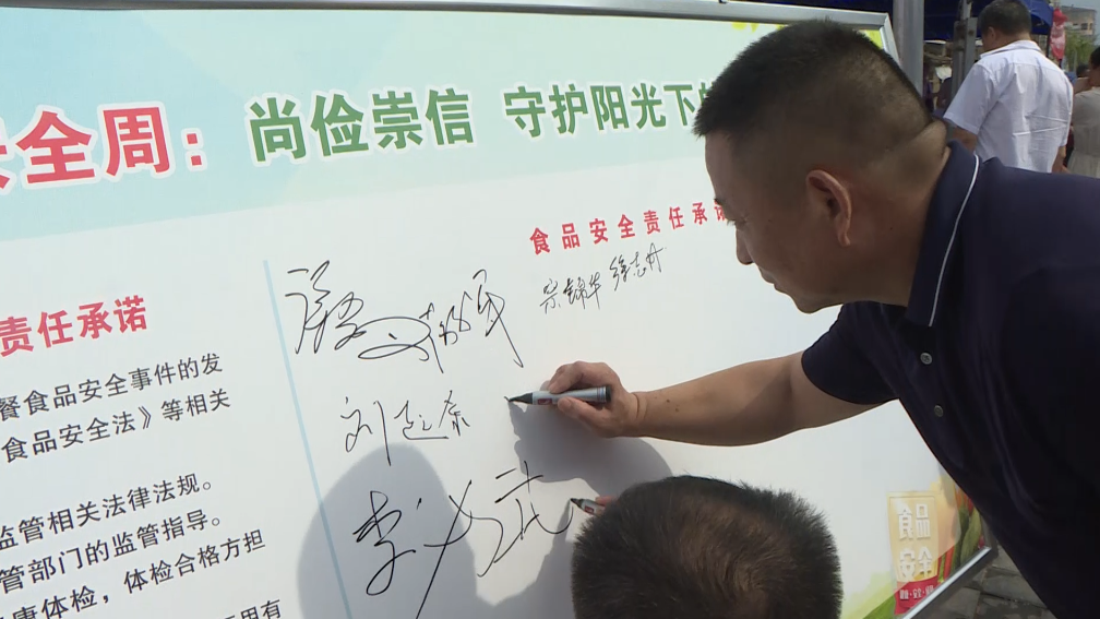 参与活动的人员观看了食品安全宣传展板,签订了食品安全承诺书。
