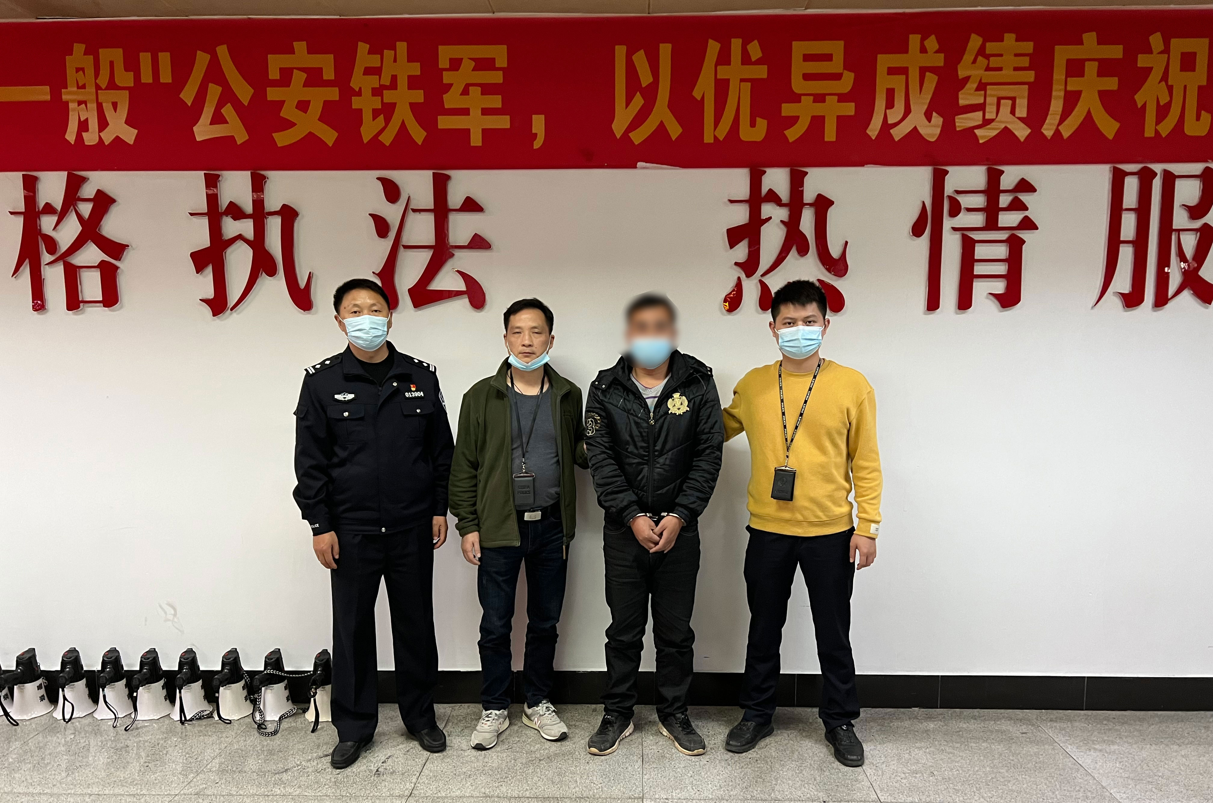 2022年1月2日15时54分,华容交警在广州市公安局公共交通分局的大力配合下,在广州地铁三号线广州东站机场北方向站将胡某方成功抓获。