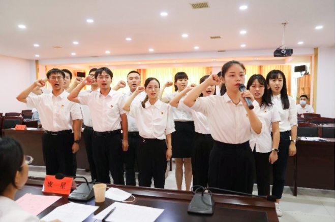 “我是一名光荣的纪检监察干部,我郑重宣誓:忠于党、忠于人民、忠于纪检监察事业,坚定理想信念、牢记初心使命、勇于担当作为、敢于善于斗争,监督保障执行、促进完善发展,做党和人民的忠诚卫士。”会议现场,新入职年轻干部高举右拳、郑重宣誓,声声誓言铿锵有力、句句承诺激发斗志,彰显了年轻干部讲清廉、纪检干部讲忠诚的坚定决心。