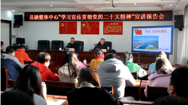 1月9日,华容县融媒体中心召开学习宣传贯彻党的二十大精神宣讲报告会,进一步推动学习贯彻党的二十大精神入脑入心、走深走实。中心全体干部职工参加会议。