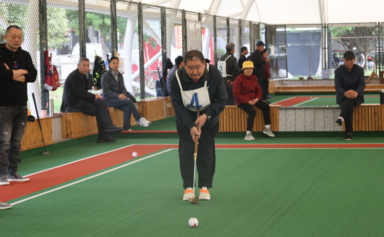 随着裁判一声令下,赛事角逐随即展开,“嗒……”击球槌与球碰撞发出清脆的响声,小球在场内滚动,人跟在球后奔跑,当小球精准通过数米开外的小球门时,一阵喝彩声在场外轰然响起。