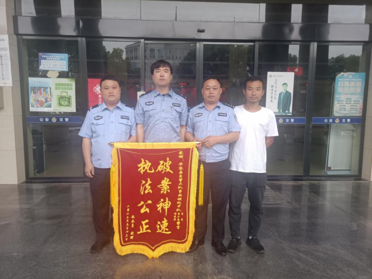 华容融媒体中心讯(通讯员 李发建)“破案神速,为民服务。我要衷心地感谢交警事故中队的警察同志!他们为民办实事,工作作风令人感动!”5月18日上午8时,市民邓某手执一面写有“破案神速,为民服务”八个大字的锦旗,来到华容县公安局交通警察大队办公楼前,将凝聚着深深谢意的锦旗送到办案民警手中。