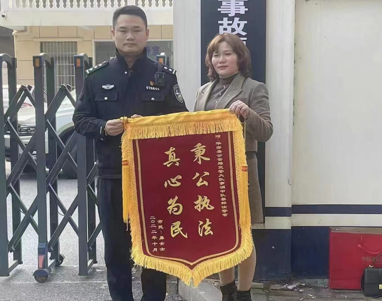 这是最近一周内华容县交警大队事故预防和处理中队获得的第二面锦旗。