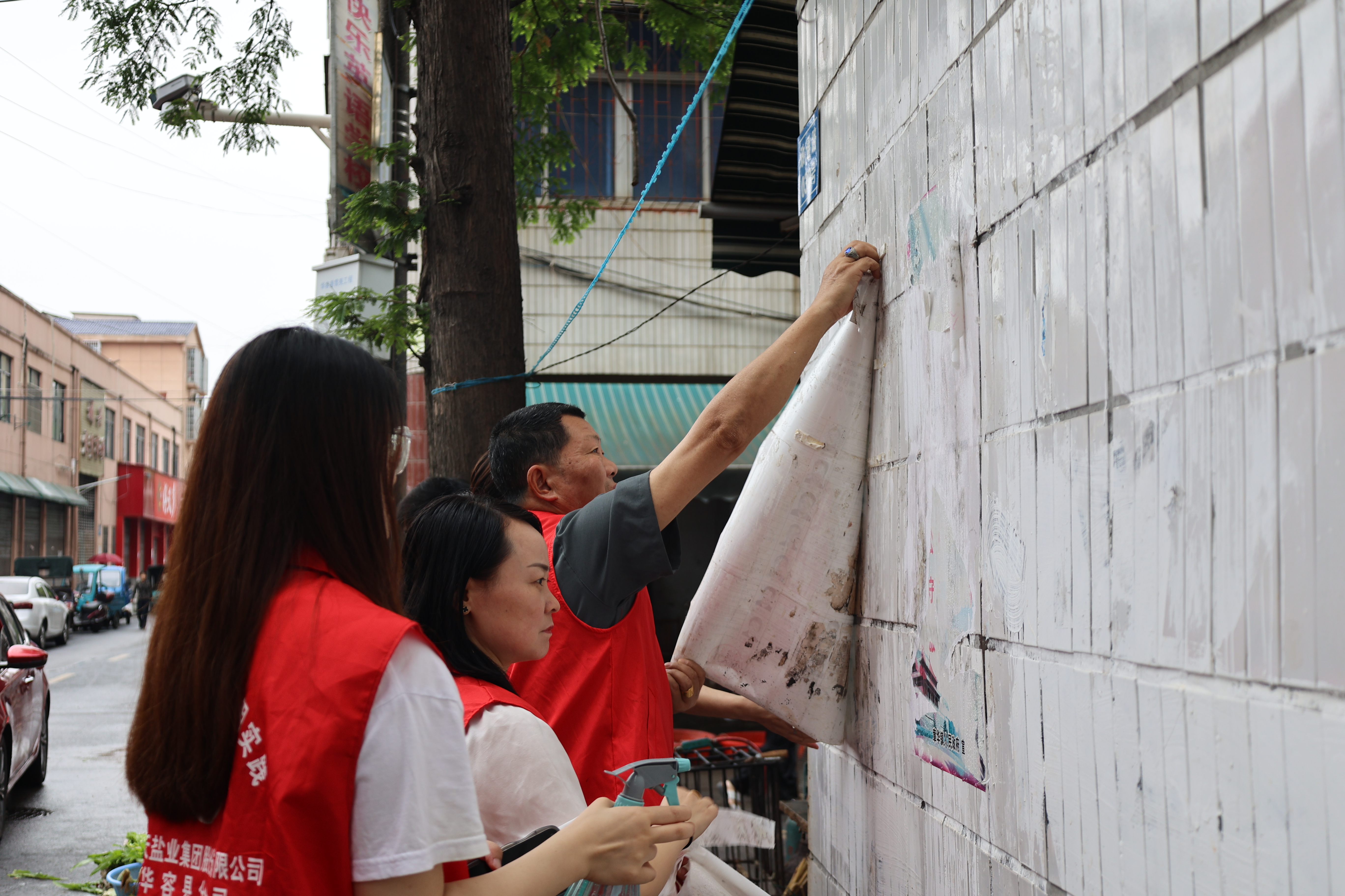 志愿者们重点对城区主次干道、背街小巷等路段和各场所、建(构)筑物墙体、候车亭、电线杆、路牌、 交通标志等公共设施“牛皮癣”广告进行集中清理。大家分工合作,用喷水壶、铲子、扫把等清理工具,按照“水浸、手揭、铲刮、清扫”流程,对各处“牛皮癣”仔细进行清理,做到墙上、柱上不留痕迹,地上不留垃圾,切实净化城市面貌。