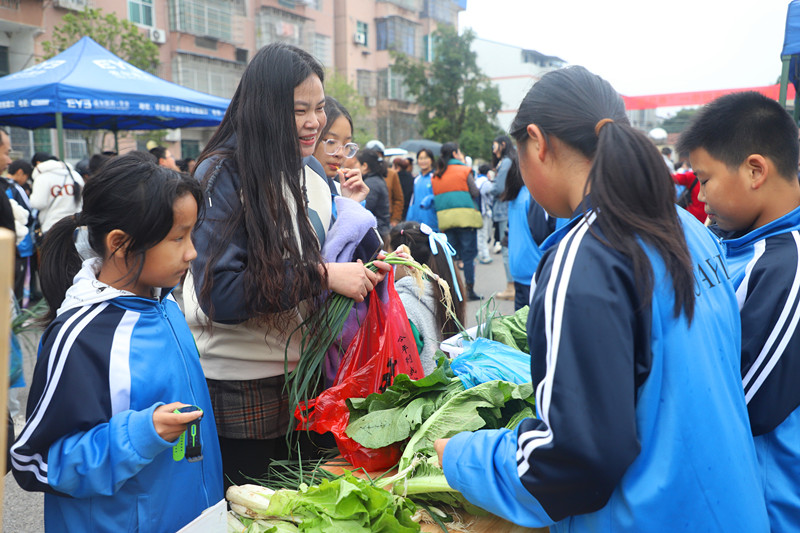 芥菜、大蒜、大白菜……二十余种由华一明辉中学“春华园”出品的新鲜蔬菜搬上义卖摊,种类繁多、琳琅满目,让人目不暇接。“买不了吃亏,买不了上当,多吃蔬菜,身体健康”“好消息,好消息!不要九十九,不要八十八,只要九块九,只要八块八”……学校“菜市场”上,各个摊位的学生售卖员向前来采购的家长们放声吆喝,努力推销着自己播种、采摘、收获的蔬菜,用自己的辛勤劳作赚取收入、奉献爱心。