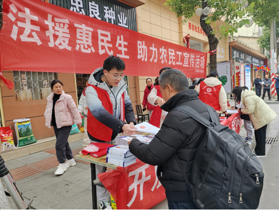 为做好春节前后农民工法律援助工作,充分发挥法律援助在根治拖欠农民工工资中的职能作用,确保农民工的合法权益得到维护,保障农民工及时足额拿到劳动报酬,2024年2月19日,华容县法律援助中心到进城务工农民工密集的章华镇西街社区开展“法援惠民生 助力农民工”宣传活动,送法进千家万户。
