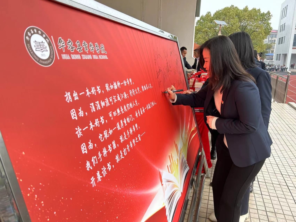 华容融媒体中心讯(通讯员 包慧莲)“腹有诗书气自华,最是书香能致远。阅读能积累语言,丰富知识......”3月14日,“华容县章华学校图书捐赠暨阅读教育启动仪式”在学校足球场隆重举行。启动仪式上,老师学生纷纷捐出自己喜欢的图书,共捐赠图书4000余册。