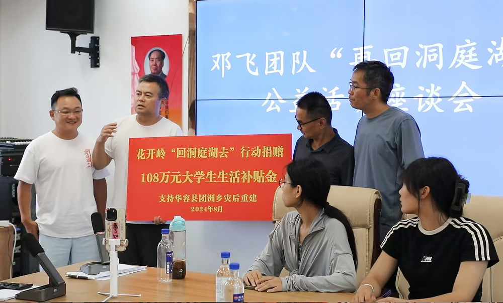 华容融媒体中心讯(记者王帅 黄欧)8月17日至20日,杭州花开岭慈善基地邓飞团队开展“回洞庭湖去”公益活动。邓飞团队受3000多名捐款人委托,将捐款送至湖南华容、平江两地500名受灾在读大学生。