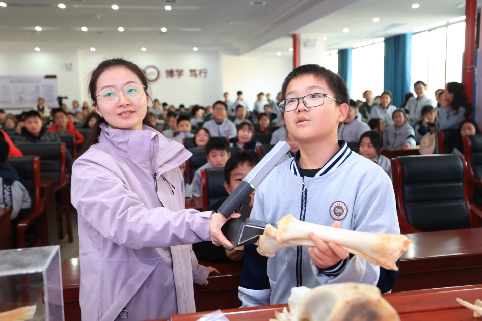 “这是什么动物的骨头?” 专家老师以生动有趣的提问开场,开启了主题为 “识骨寻踪 —— 动物考古的奇妙之旅” 的讲座。通过大量珍贵的考古图片和现场视频,带领同学们近距离了解文物发掘和考古鉴定的知识……大家互相传递平时只能在课本中见到的动物骨骼标本,摸一摸、敲一敲,展开了热烈的讨论。知识抢答环节,同学们高举手臂抢答问题,在激烈的竞争过程中,既巩固了考古知识,又收获了精美的奖品。一堂讲座,构筑起了一座探寻古代人类与动物关系、破解兽骨 “密语”、追寻湖湘文明的时空桥梁。