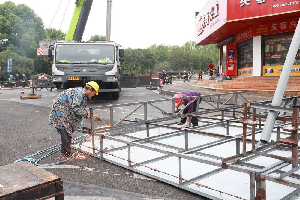 黄湖楼隐患广告牌被拆除 城市“安全防线”再加固