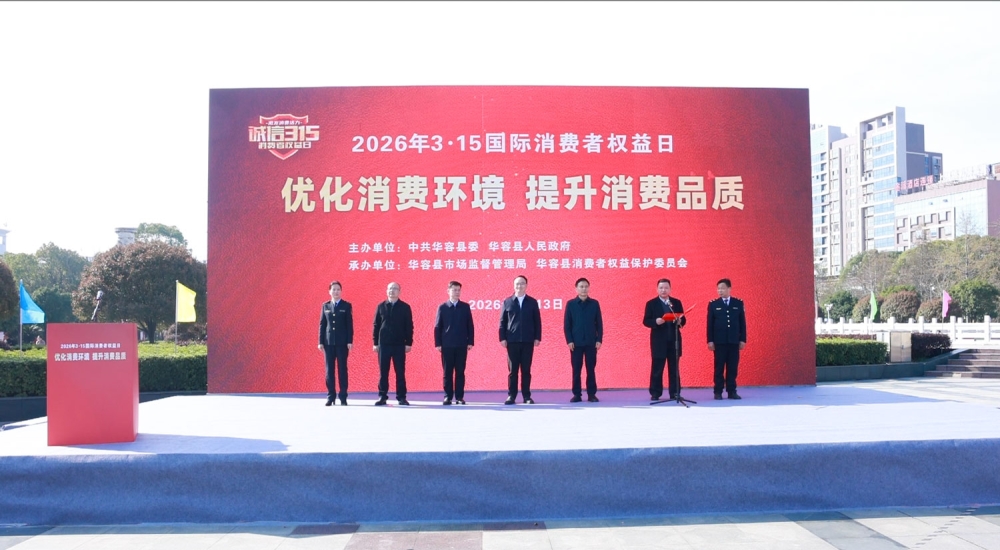 华容融媒体中心讯(记者 孙舒 董华杰 周佳欢 刘思昊)3月13日,华容县在人民广场举行2026年“3·15”国际消费者权益日现场宣传活动。本次活动以“优化消费环境 提升消费品质”为主题,由县市场监督管理局牵头组织,旨在增强广大消费者的维权意识,营造安全放心的消费环境。县委副书记张岳平宣布活动启动,县领导陈明、易斌、李劲松参加。