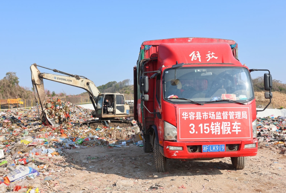 与此同时,在鼎山垃圾处理场,分会场活动也在同步进行,重点展示假冒伪劣商品销毁过程,通过掩埋方式销毁价值15余万元的过期饮料.食品等产品,集中销毁了假冒伪劣商品4158公斤,彰显打击假冒伪劣、维护市场秩序的决心。