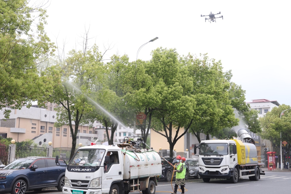 治理过程中,园林部门将严把技术规范,根据天气和花苞生长进度,精准调配“国光抑宝”生物调节剂稀释液,确保药剂使用安全有效。作业采用“无人机顶端精准喷雾+雾炮车中上层喷施+洒水车中下层补喷”的立体模式,实现全树冠无死角、全覆盖喷洒,提升药剂吸收效果。在4月中下旬香樟盛花期关键时段,10天内完成3次全区域循环喷施。