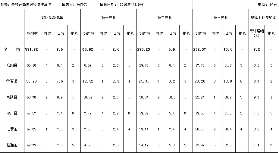 2016年1—3月岳阳市各县(市)区主要经济指标(一)