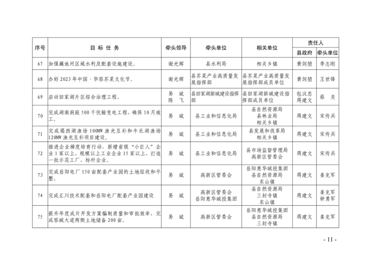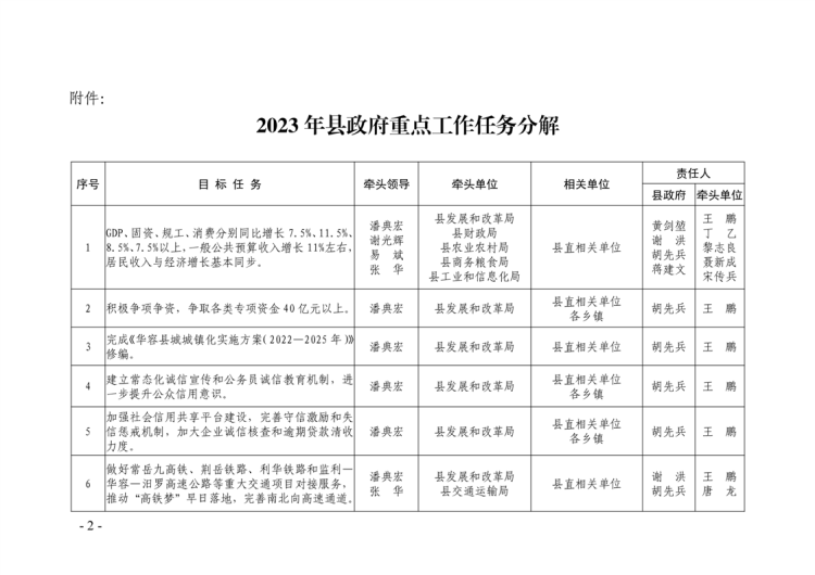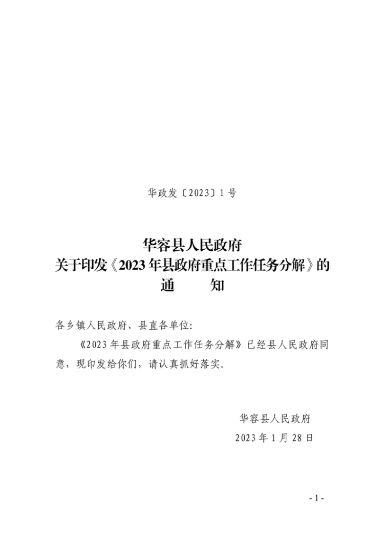 华容县人民政府关于印发《2023年县政府重点工作任务分解》的通知
