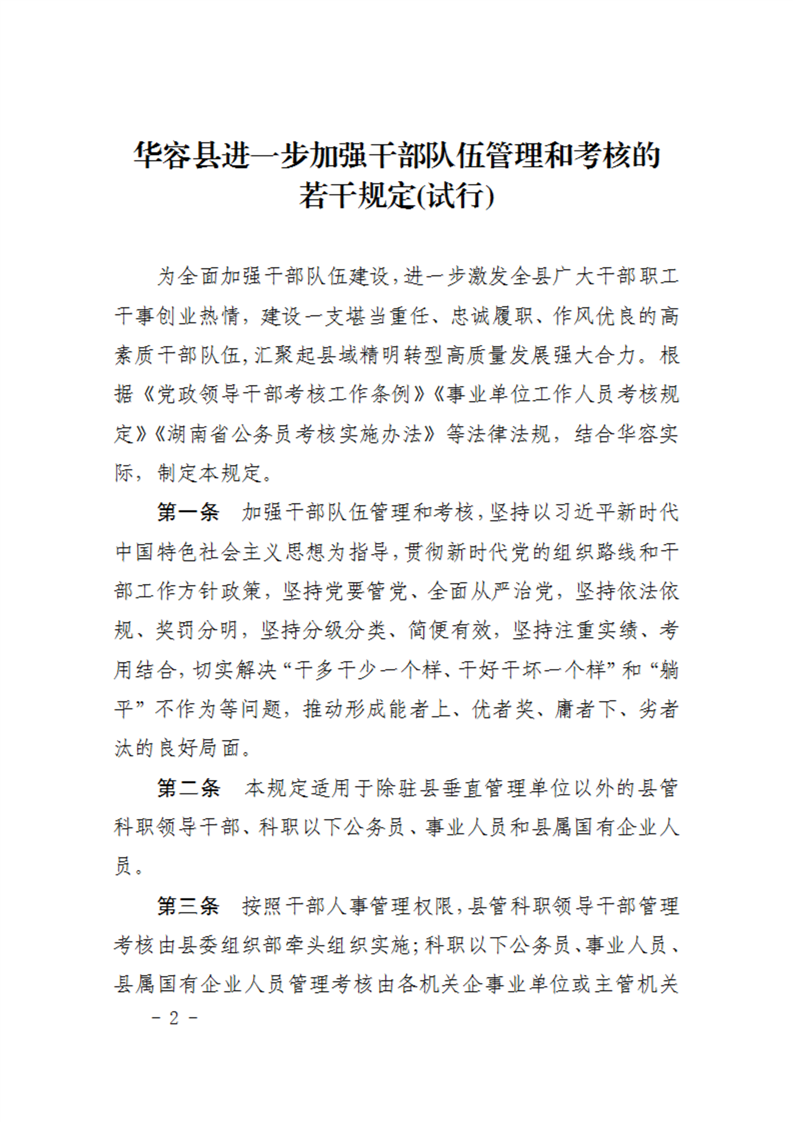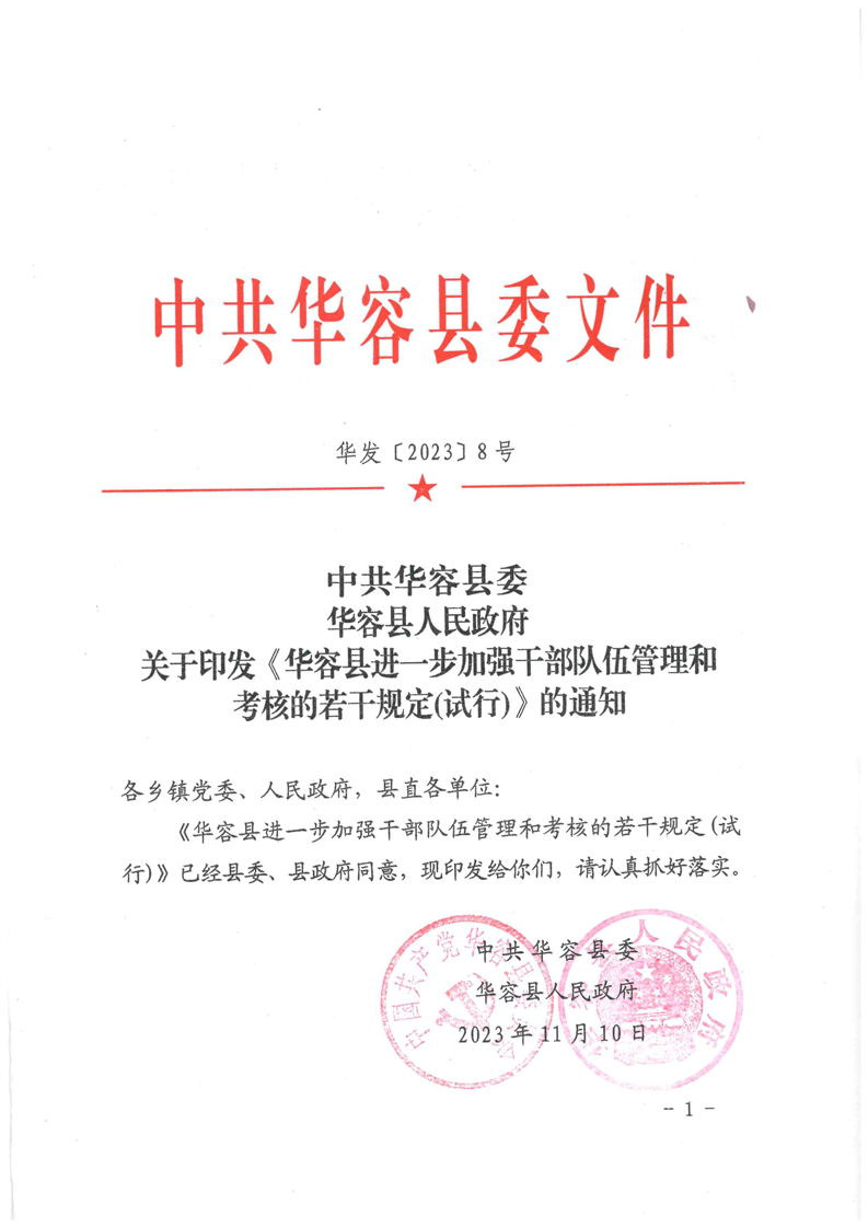 中共华容县委 华容县人民政府关于印发《华容县进一步加强干部队伍管理和考核管理的若干规定(试行)》的通知