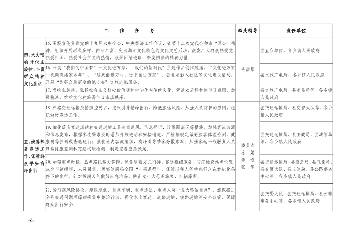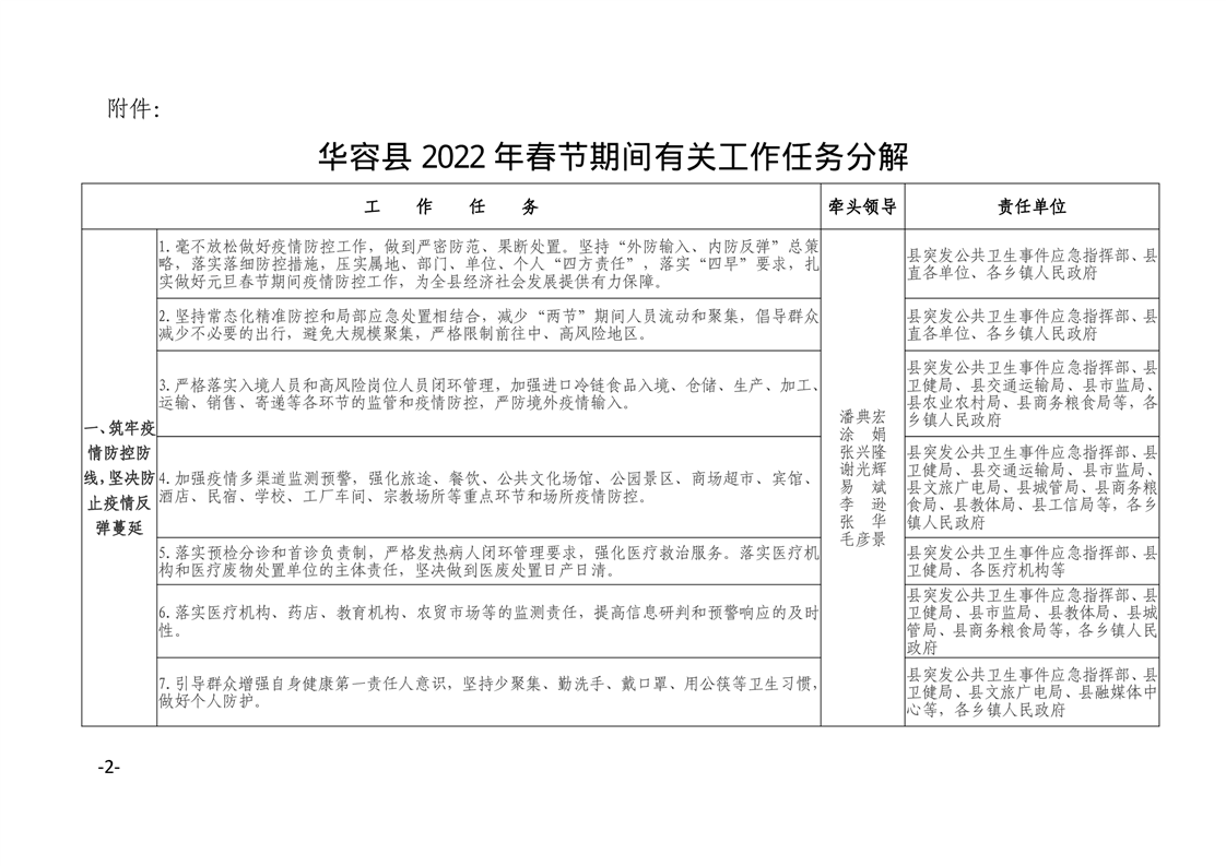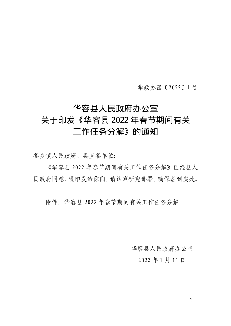 华容县人民政府办公室关于印发《华容县2022年春节期间有关工作任务分解》的通知