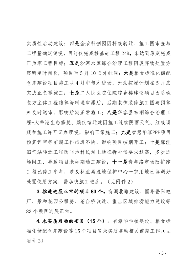 华容县人民政府办公室 关于1-4月份全县重点建设项目进展情况的 通 报