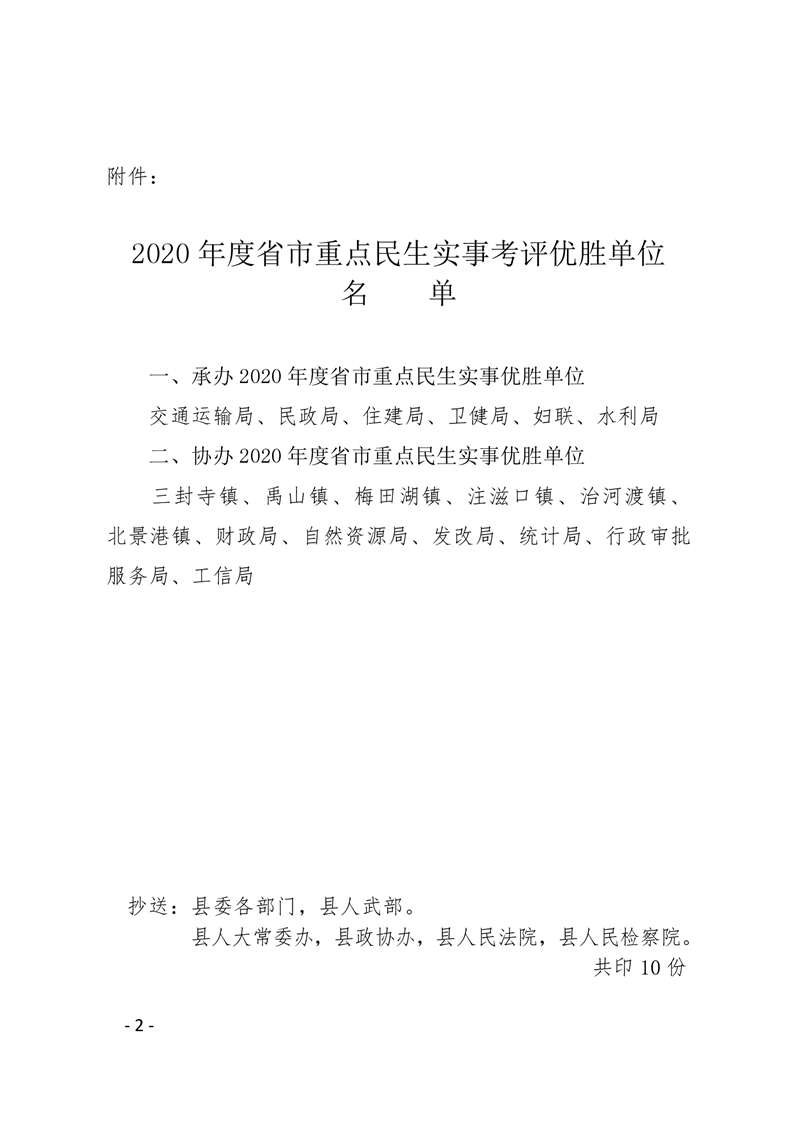 华容县人民政府办公室 关于2020年度省市重点民生实事考评结果的通 报